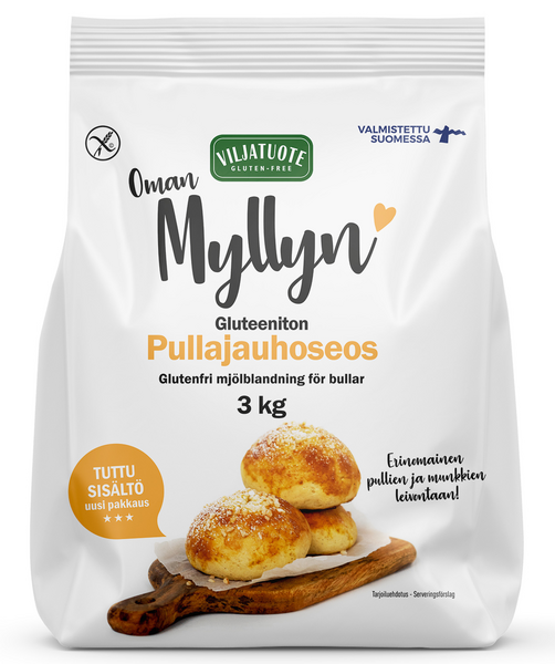 GluteenitonLuonnostaan gluteenittomalla jauhoseoksella leivot niin maukkaat pullat, munkit kuin suolaiset kahvileivätkin. Säilöntä- ja lisäaineeton.