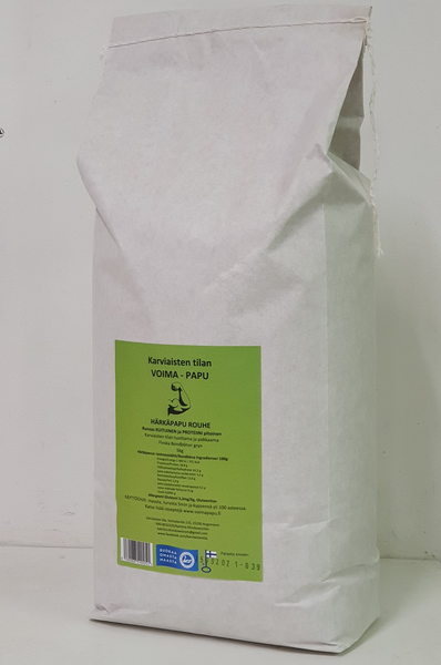 VegaaninenGluteeniton ja proteiini pitoinen suomalaista härkäpapua oleva rouhe pussi. Tulee suoraan tilalta. Ei lisäaineita.