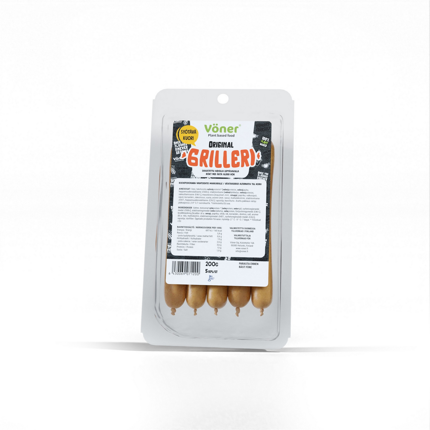 Vesi, rapsiöljy, kasviproteiinit (härkäpapu, herne)*, sakeuttamisaineet (E461, E425 (sisältää SULFIITTEJA)), aromit ja savustettu suola, hyytelöimisaineet (E407, E508), kasvikuitu (psyllium, herne), mausteet (mm. sipuli), suola, hydrolysoitu kasviproteiini, hapettumisenestoaine (E300), väriaine (E172), kasvikuitukuori. *Tuotettu EU:ssa. Avattu pakkaus säilyy jääkaapissa (2-8° C) 7 vuorokautta.