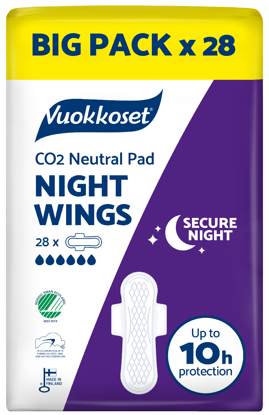 Vuokkoset-tuotteet ovat nyt täysin hiilineutraaleja! Vuokkoset Night Wings, reilusti pidempi siivellinen ohutside, jossa Drop Lock takaa varman imukyvyn.
