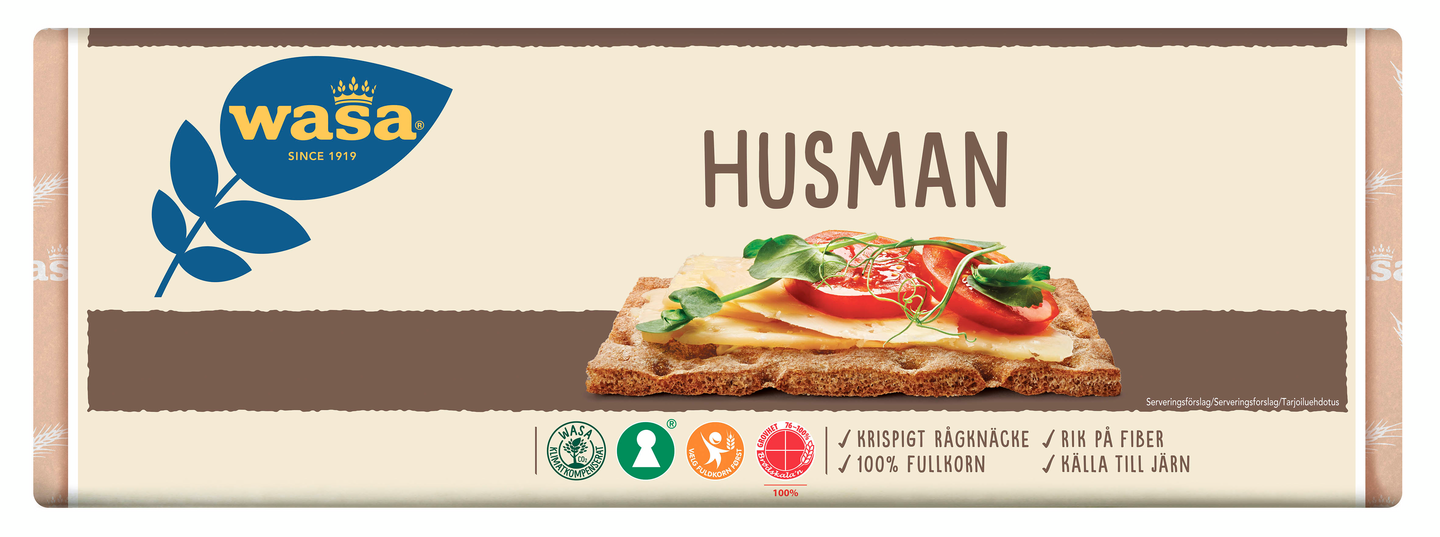 Wasa Husman on rukiista valmistettu klassikkomme. Sitä on leivottu samalla reseptillä ja huolella jo yli 80 vuoden ajan. Emmekä aio muuttaa mitään jatkossakaan. Erityisen rapeaa ja rouheaa suosikkiamme leivotaan samalla tavalla vielä vuosien ajan.