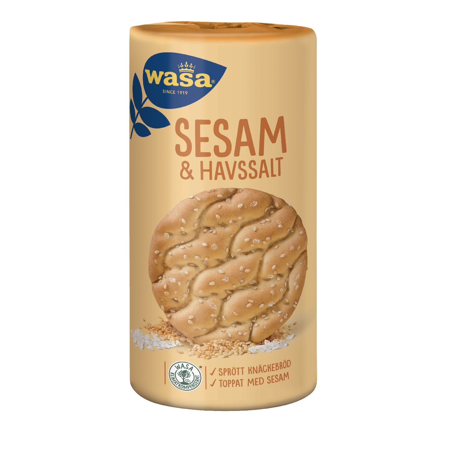 Wasa pieni pyöreä on vehnäpohjainen näkkileipä, jonka pinnalla on kullankeltaisia seesaminsiemeniä ja merisuolaa. Täydellinen välipala!