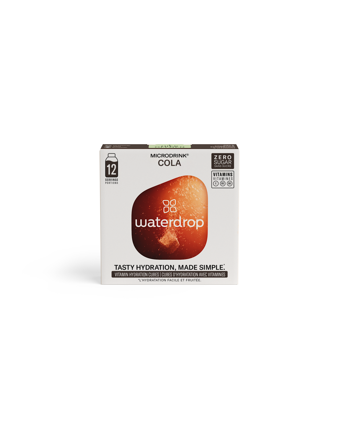 Vegaaninenwaterdrop® tekee juomavedestäsi hedelmäisen virvoitusjuoman missä ja milloin tahansa. Kolan makuisista porejuomakuutioista saat virkistävän juoman, joka maistuu tutulta, kuplivalta kolajuomalta ja kevyesti vihreältä kahvilta. Juoma sisältää myös välttämättömiä vitamiineja. Niin herkullista, ettei sitä uskoisi sokerittomaksi!
