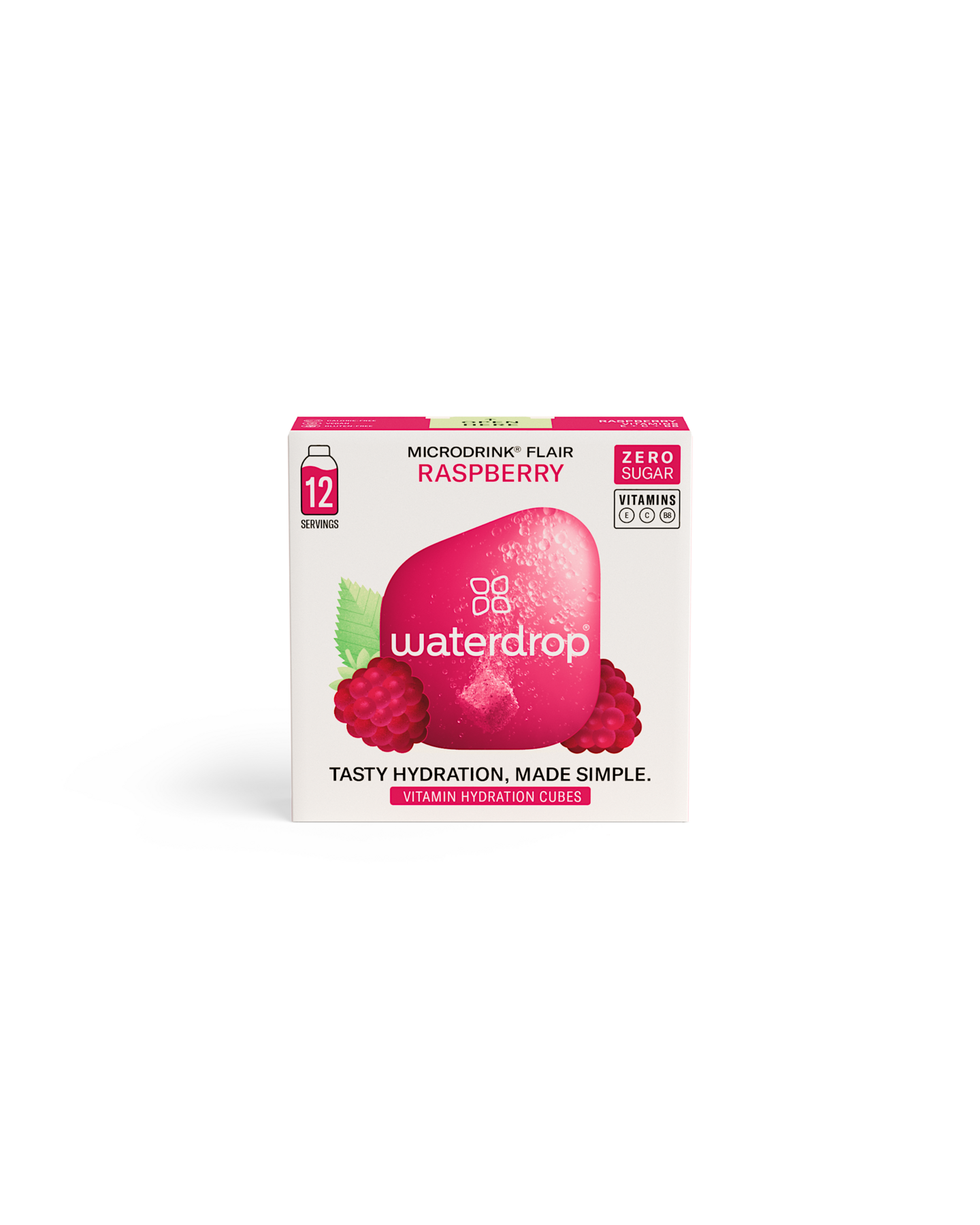 VegaaninenWaterdrop® muuttaa veden herkullisen hedelmäiseksi vitaminoiduksi juomaksi – ilman sokeria! Rasberry-porekuutioissa kypsien vadelmien miellyttävän makea maku kohtaa sekä raikkaat että kirpeät vivahteet, joita täydentää seljan- ja limenkukan maut. Raikkaan koukuttava vadelmanmakuinen juoma, joka houkuttelee juomaan enemmän vettä siemaus siemaukselta. Sisältää vitamiinit: E, C ja Biotiini (B8). Käyttöohje: Laita 1 kuutio vähintään 400 ml kylmää juomavettä. Odota, kunnes kuutio on täysin liuennut ja nauti ihanan makuisesta virkistävästä juomasta. Sisältää 12 annosta.