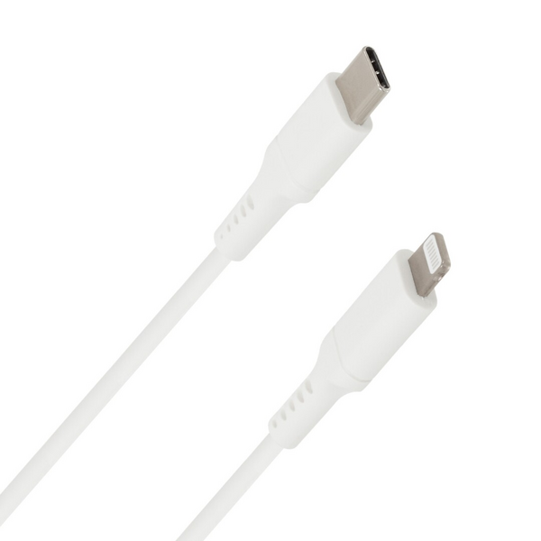 Kaapelissa on USB Type-C urosliitin ja toisessa päässä Lightning urosliitin. Sopii käytettäväksi USB-C virtalähteen kanssa.