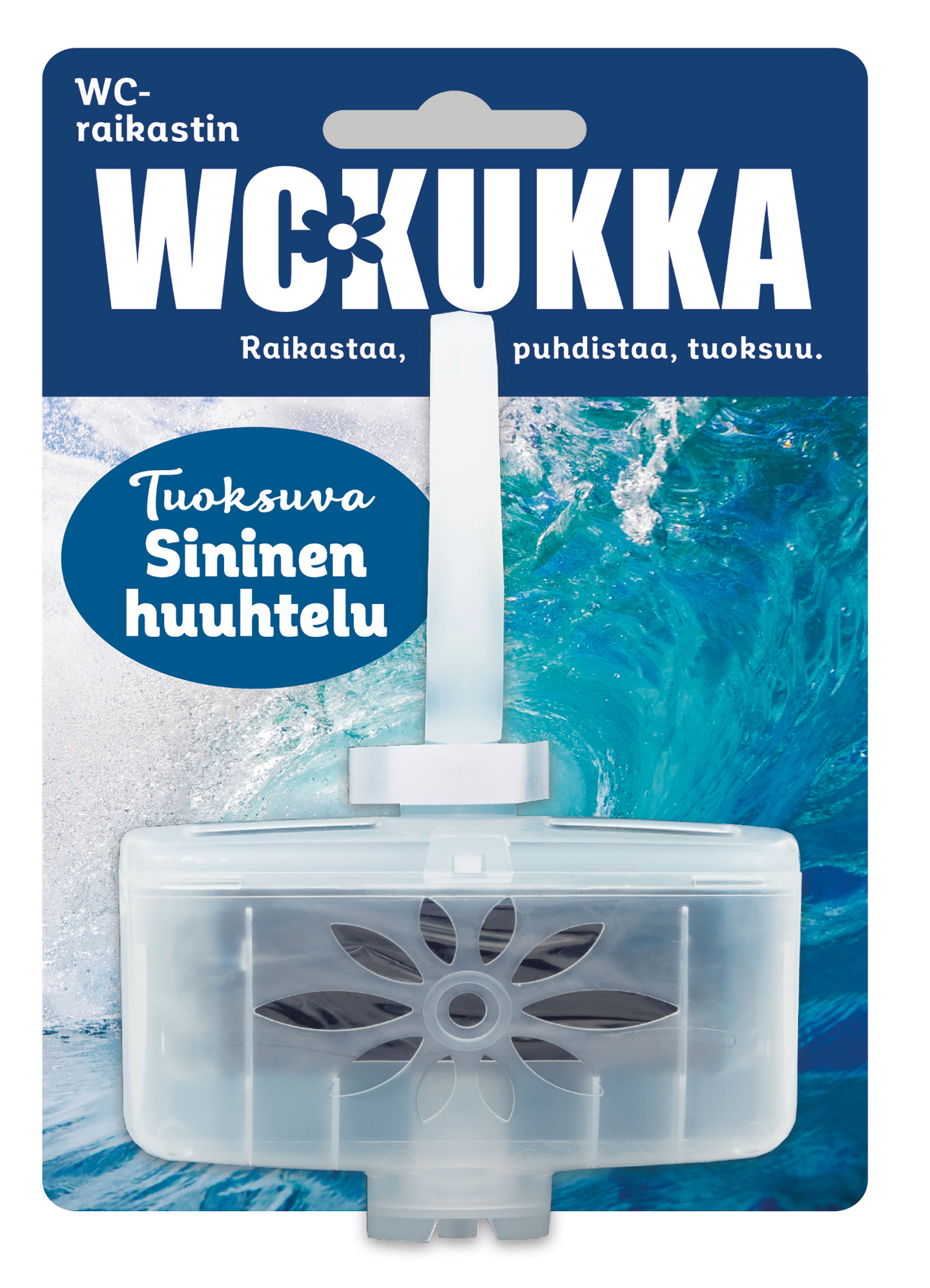 WC Kukka Sininen huuhtelu wc-raikastin puhdistaa wc-altaan ja antaa raikkaan tuoksun jokaisella huuhtelukerralla. WC-raikastin ennaltaehkäisee kalkin muodostumista ja poistaa epämiellyttäviä hajuja. Puhdas, mieto tuoksu.