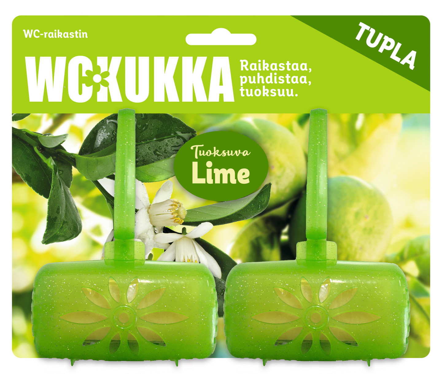 WC Kukka Lime wc-raikastin puhdistaa wc-altaan ja antaa raikkaan tuoksun jokaisella huuhtelukerralla. WC-raikastin ennaltaehkäisee kalkin muodostumista ja poistaa epämiellyttäviä hajuja. Raikas, virkistävä ja puhdas tuoksu. Kätevä tuplapakkaus kestää kotikäytössä useita viikkoja.