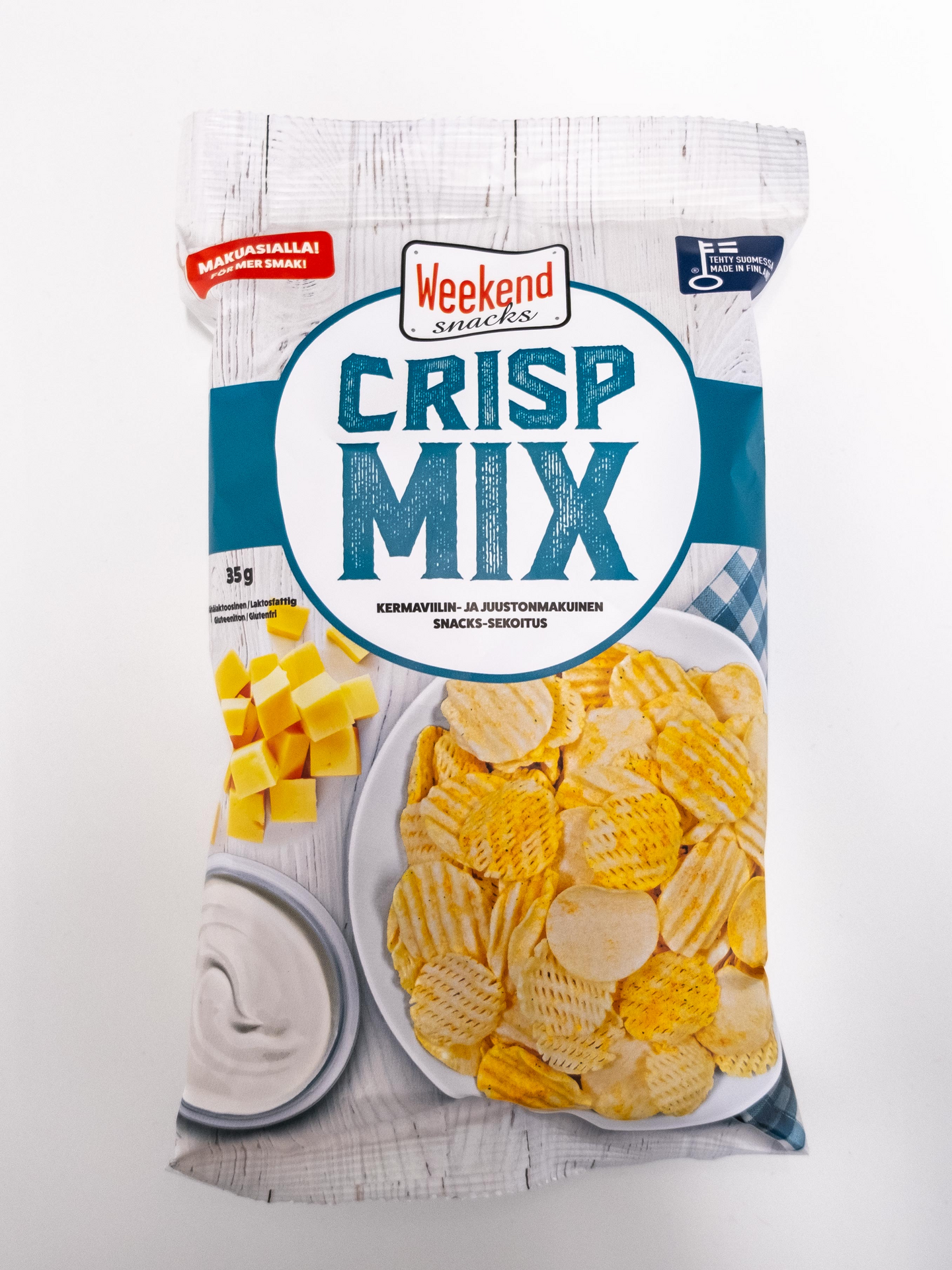 Perunahiutale 40% (EU), perunatärkkelys, rypsiöljy, mausteseos [suola, maltodekstriini, sipuli, sokeri, JUUSTOJAUHE, PIIMÄJAUHE, JOGURTTIJAUHE, KERMAJAUHE, rypälesokeri, aromi, happamuudensäätöaine (maitohappo), persilja, hiivauute, mausteuute (kurkuma, paprika)], suola, paprika, kurkuma.