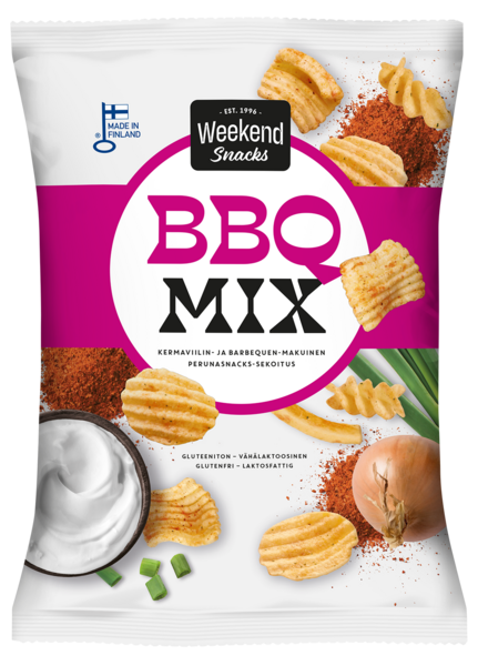 Perunahiutale 40 % (eu), perunatärkkelys, rypsiöljy, mausteseos [suola, sokeri, maltodextriini, sipuli, JUGURTTIJAUHE, hiivauute, paprika, valkosipuli, JUUSTOJAUHE, happamuudensäätöaine (maitohappo),aromi,paprikauute, savuaromi], kurkuma, paprika.