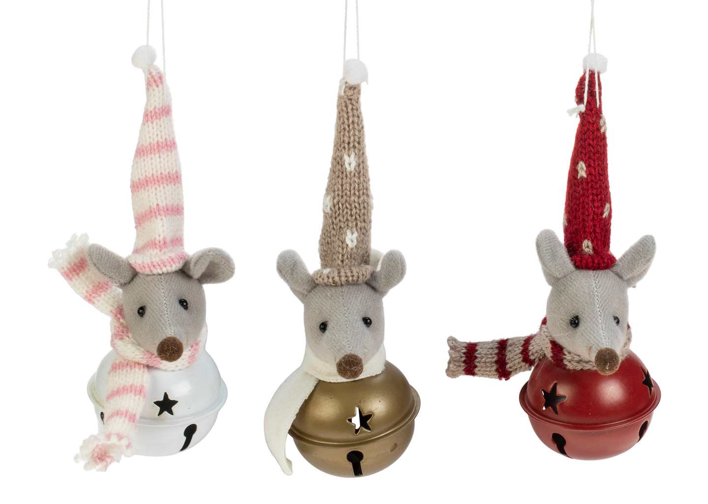 Weisteen ripustettava hiiri-kulkunen on 13cm korkea. Hiiriä on kolmea eri väriä punainen, kullanvärinen ja valkopinkki.