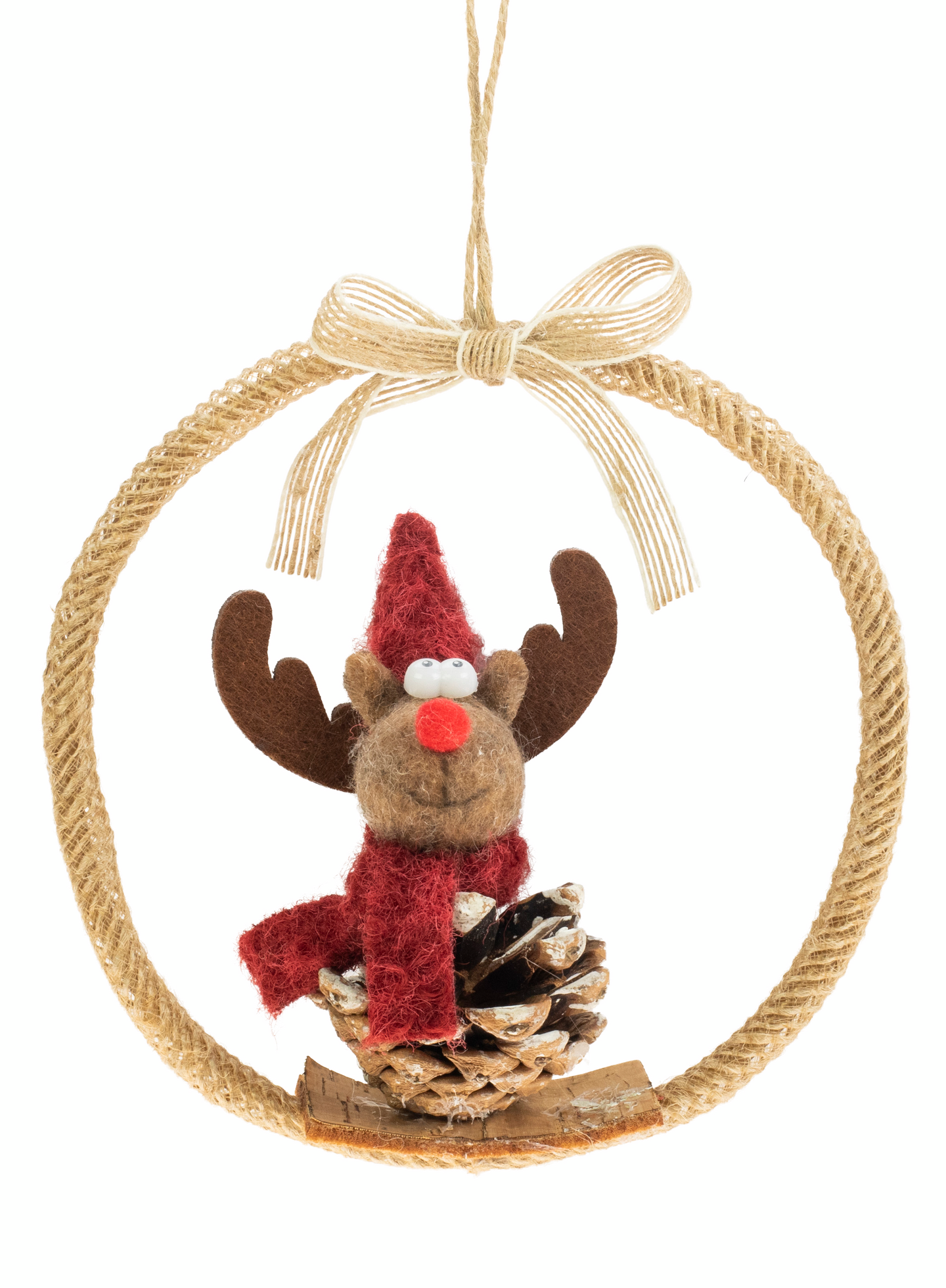 Weiste narurenkaassa on käpyporo, jolla on ruskeat sarvet, punainen myssy ja kaulaliina sekä hamppunaru ripustusta varten. Renkaan halkaisija on 15cm.