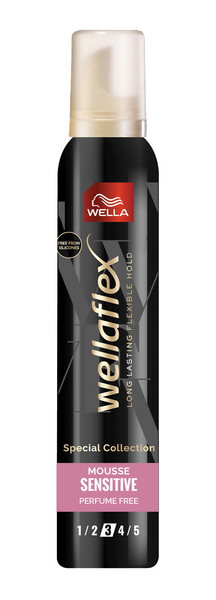 Wellaflex Flex Sensitive muotovaahto on hellävarainen hiuksille ja hiuspohjalle. Makadamia öljy rauhoittaa hiuksia ja tekee hiuksista helpot käsitellä. Tuote on dermatologisesti testattu ja hajusteeton eikä sisällä silikoneja. Wellaflex flex Sensitive antaa vahvan ja joustavan pidon jopa 24 tunniksi ilman tahmeutta. Tuote suojaa kosteudelta ja sisältää UV suojan Täydellinen ratkaisu herkille hiuksille ja hiuspohjalle.