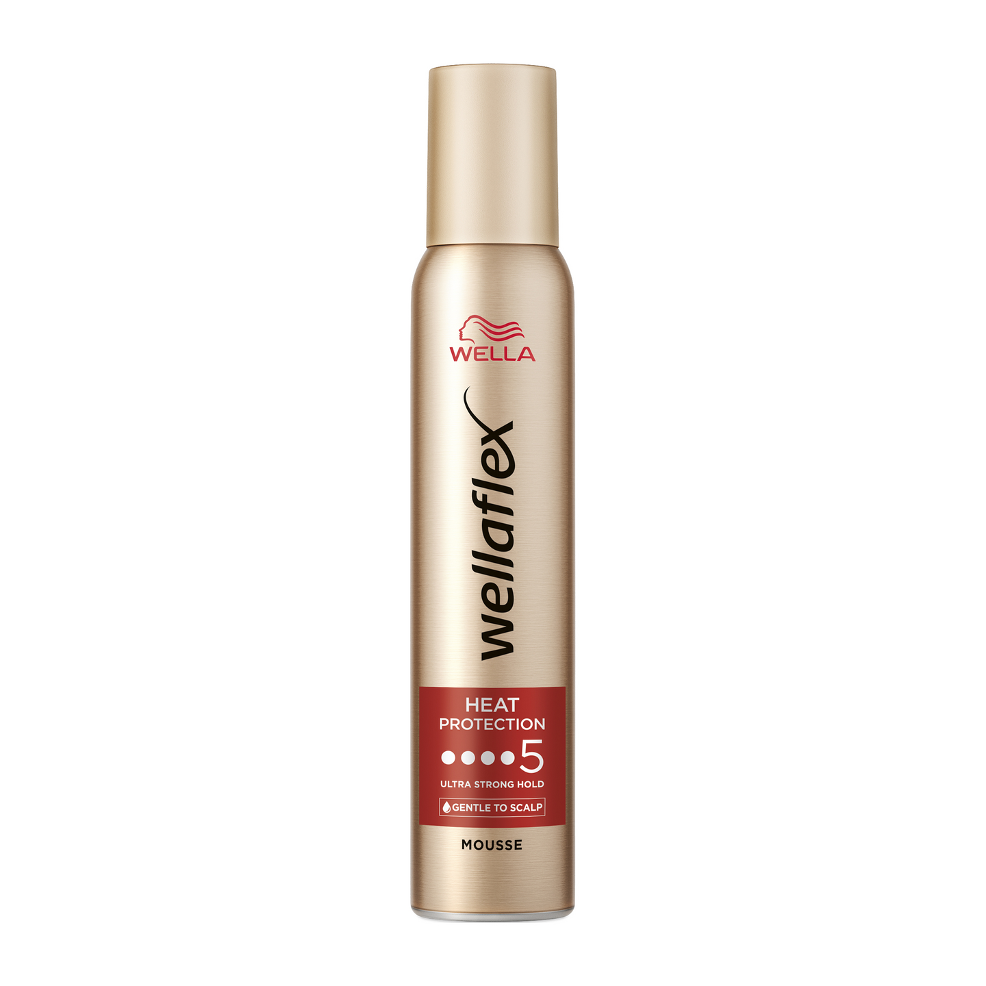 Wellaflex Heat Protection Mousse 200 ml –hiusvaahto auttaa suojaamaan hiuksia lämpövaurioilta.
