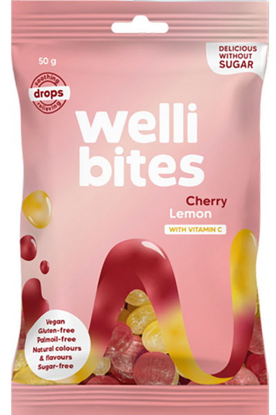 Wellibites Cherry & Lemon sokeriton makeispussi 50g