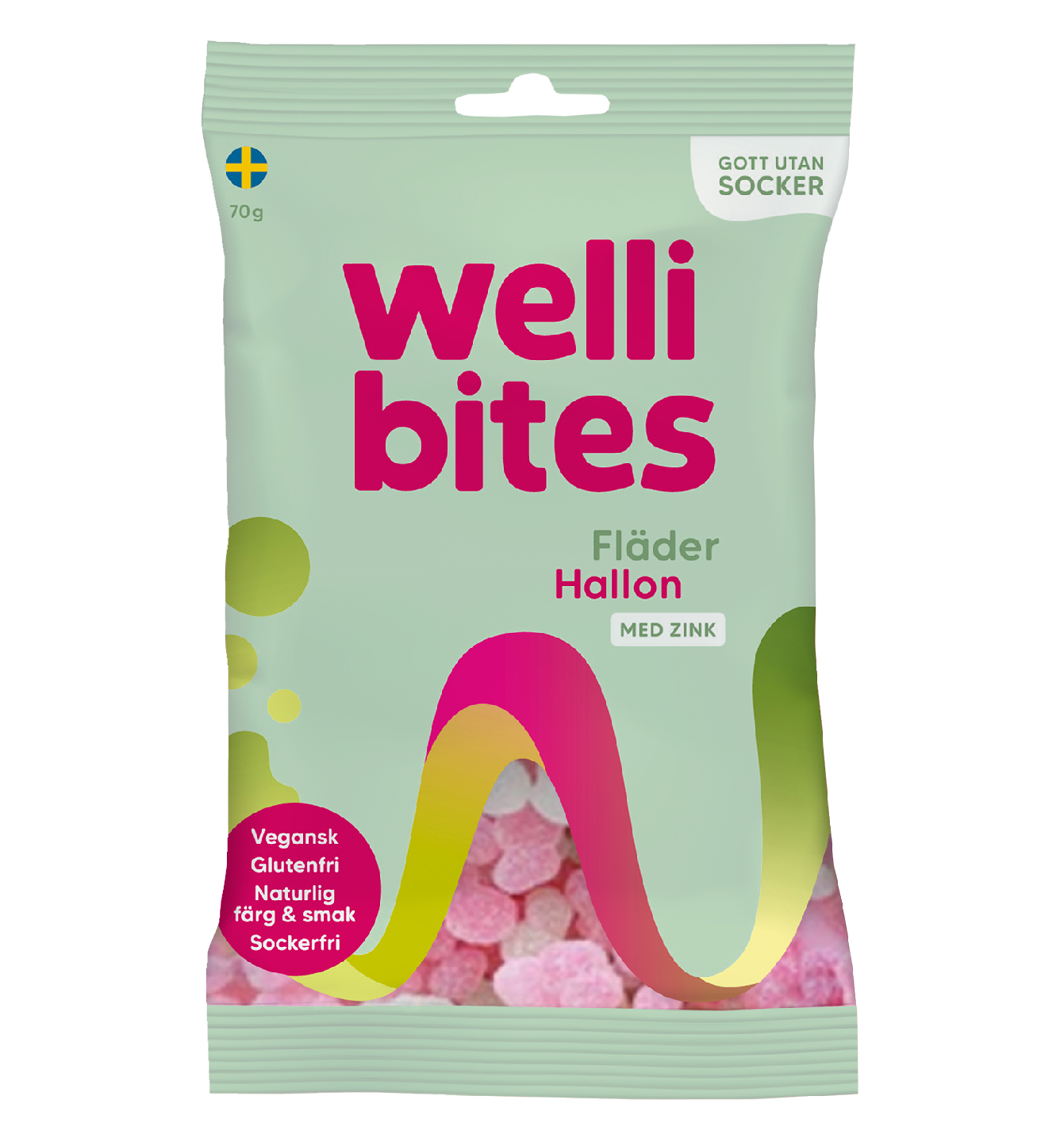 Wellibites Seljanmarja & Vadelma makeispussi 70g