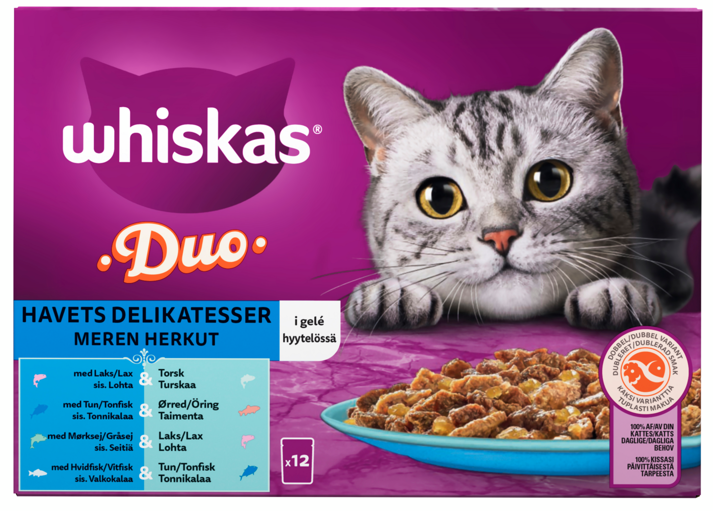 Whiskas 1+ Duo Meren Herkut Hyytelössä 12x85g