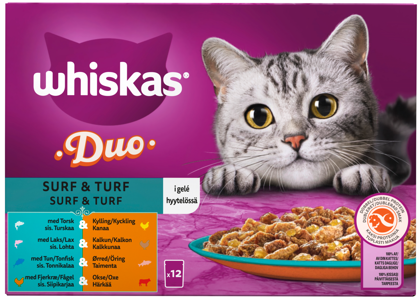 Whiskas 1+ Duo Surf and Turf Hyytelössä 12x85g