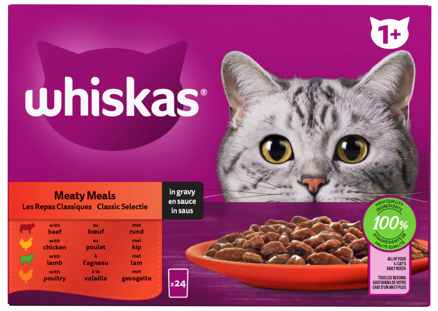 Whiskas 1+ perinteiset ateriat kastikkeessa 24x85g