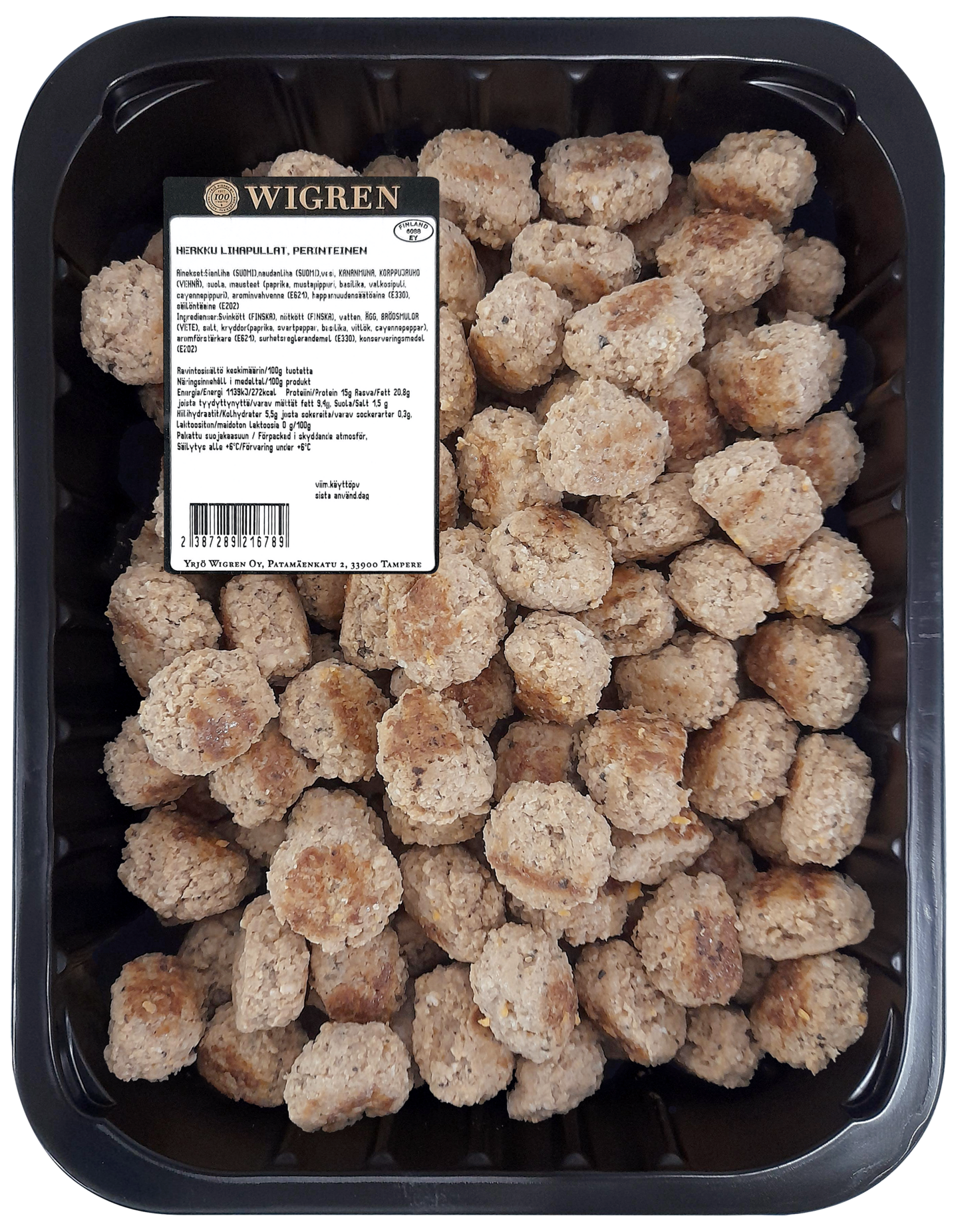 MaidotonSuomalaisesta naudan- ja porsaanlihasta valmistetut kotoisat lihapullat.