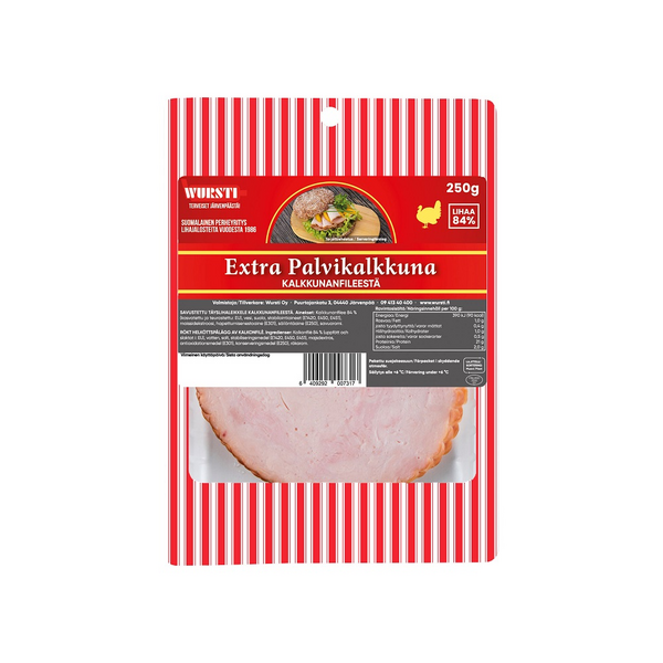 Wursti Extra Palvikalkkuna kalkkunan- ja broilerinfileestä 250g
