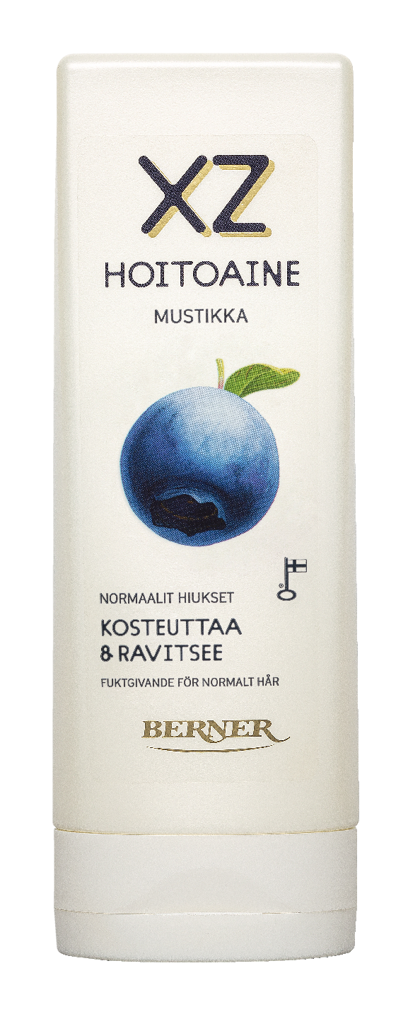 XZ Mustikka hoitoaine kosteuttaa ja hoitaa hiuksia, tehden niistä pehmeät, helposti käsiteltävät ja hyvinvoivat. Hoitoaine sisältää pohjoismaista mustikansiemenöljyä ja kotimaista betaiinia, jotka ravitsevat ja kosteuttavat hiuksia. Yhdessä ne parantavat hiusten kammattavuutta, lisäävät kiiltoa ja vähentävät sähköisyyttä. Metsämustikan tuoksu viimeistelee pesuhetken.