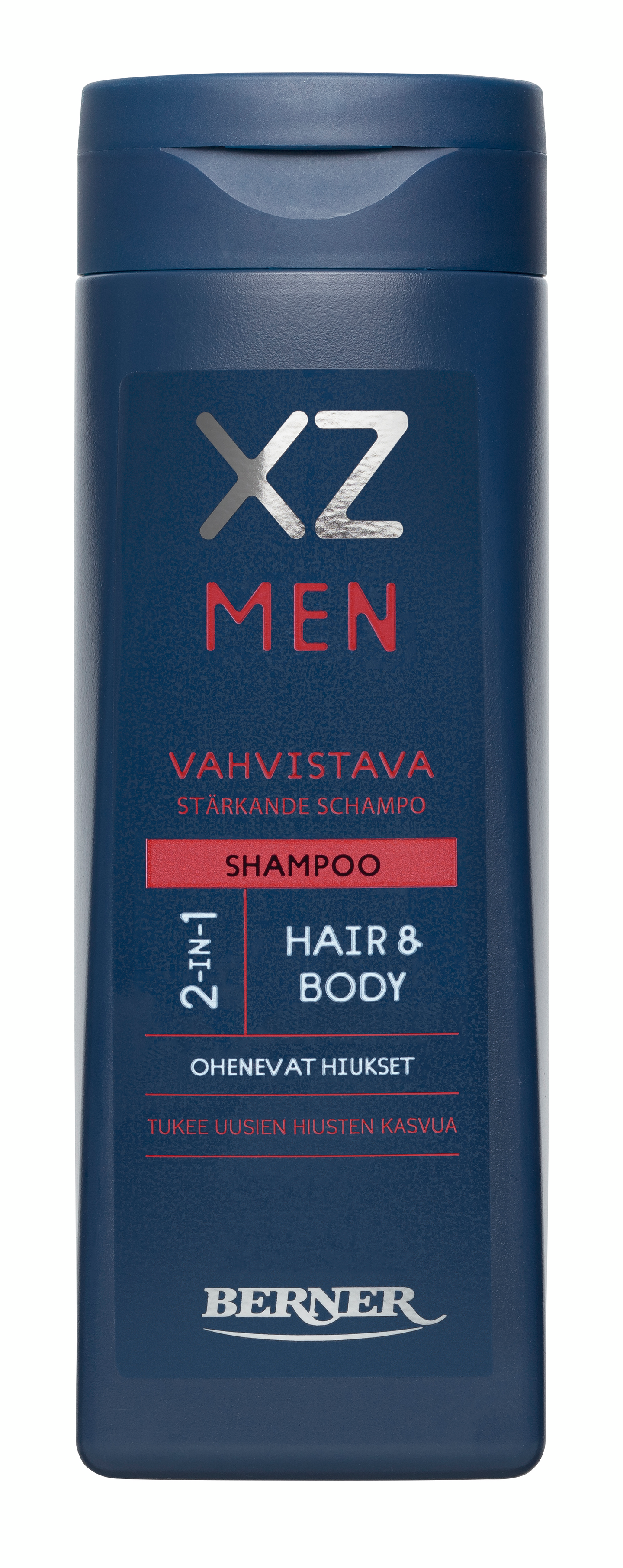 XZ MEN Vahvistava shampoo suojaa ja vahvistaa ohenevia hiuksia tehden niistä terveen ja hoidetun näköiset. Shampoon sisältämä proteiini ja H‑vitamiini vahvistavat hiusta ja tukevat uusien hiusten kasvua. Virkistävä koostumus sopii päivittäiseen käyttöön. Raikas ja virkistävä tuoksu viimeistelee pesuhetken. 2in1-koostumus sopii sekä hiusten että vartalon pesuun.