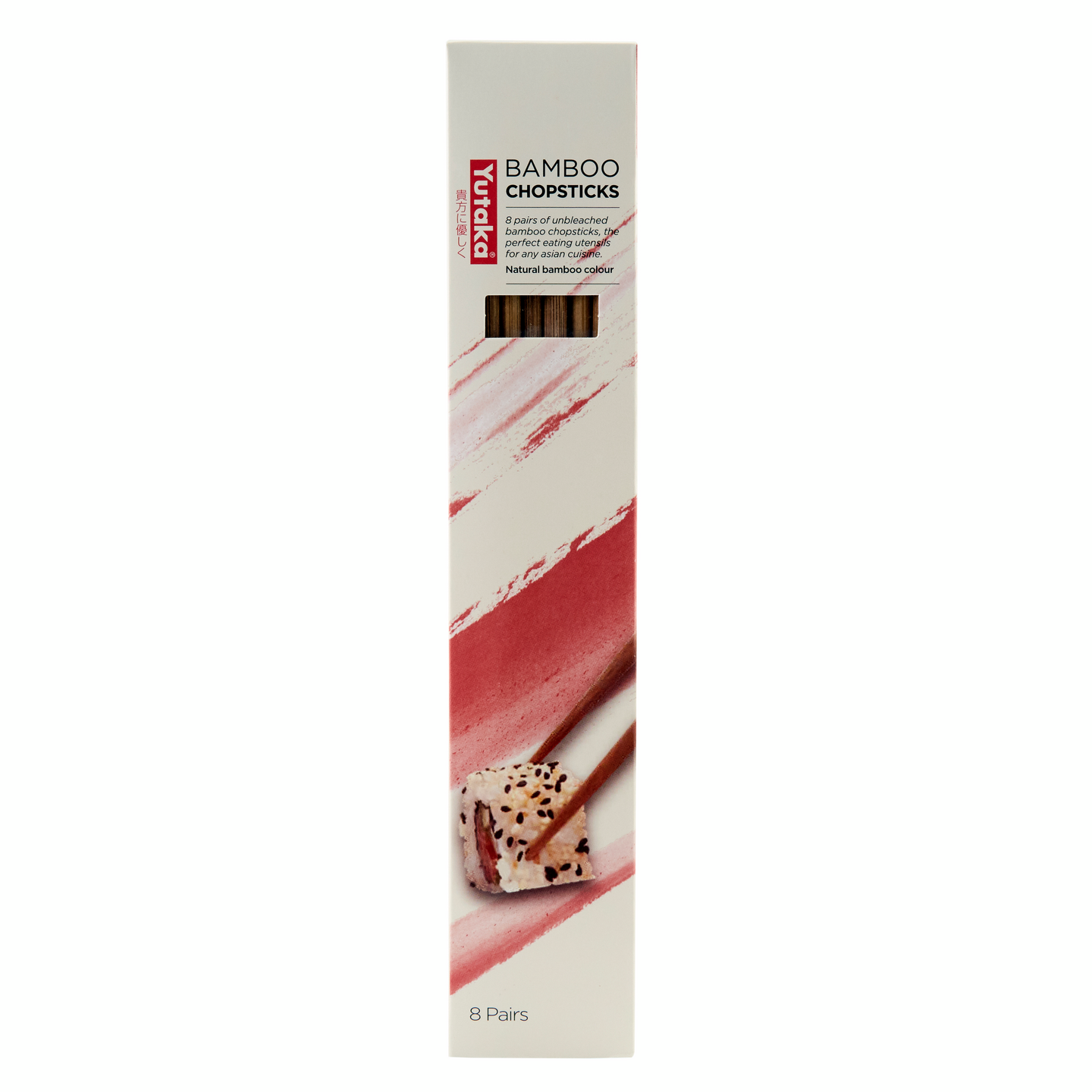 Kauniit ja laadukkaat bambusyömäpuikot tekevät japanilaisesta ruokailusta entistä suuremman nautinnon. Yutakan kertakäyttöisiä syömäpuikkoja voi myös pestä ja käyttää useamman kerran. Pakkauksessa on kahdeksan paria syömäpuikkoja.