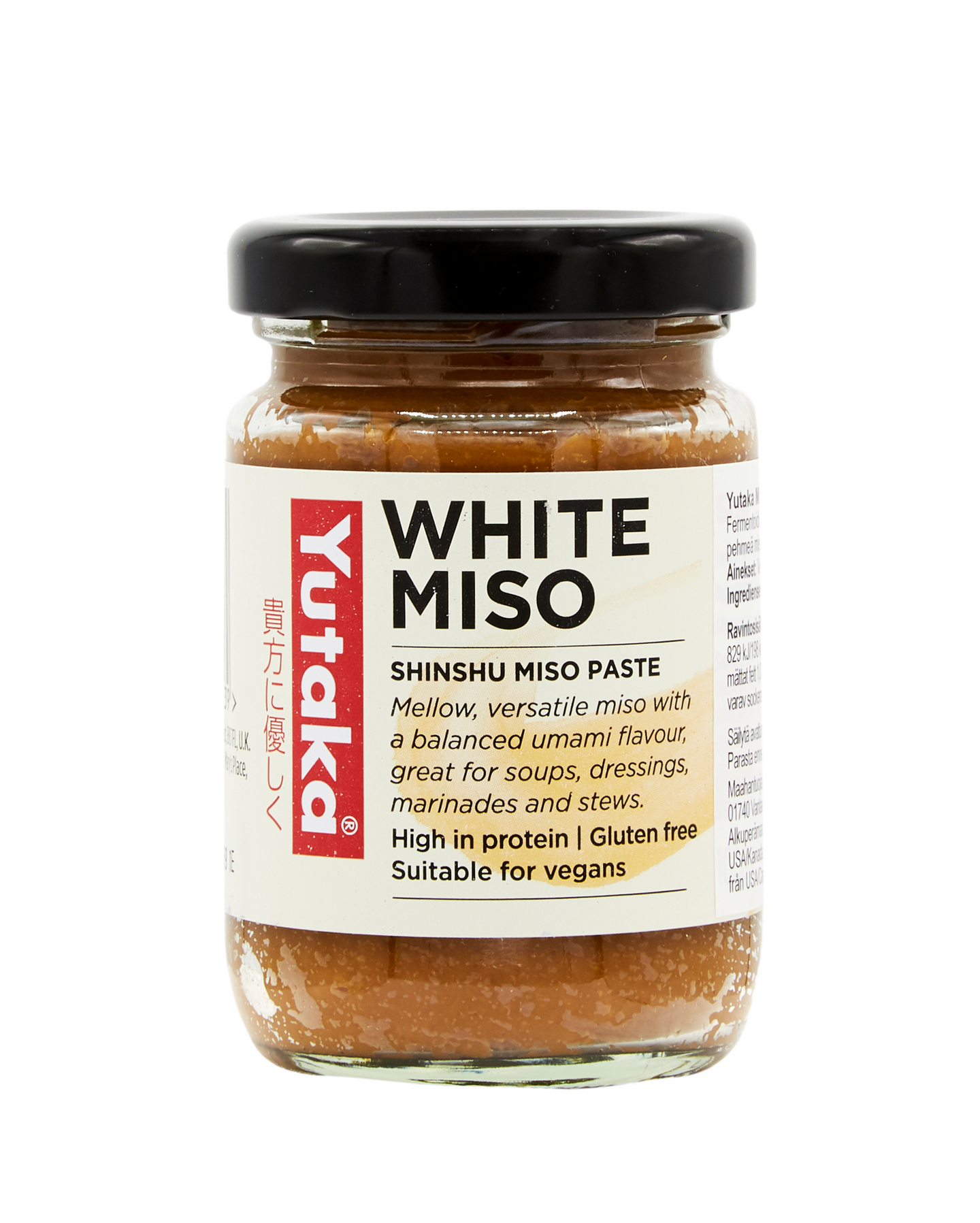 VegaaninenYutakan Misotahna 100 g on vaalea misotahna, joka on luonnostaan hieman makea ja se antaa ruokiin täyteläisen kermaista makua. Se sopii monipuolisesti käytettäväksi maustamiseen, keittoihin, marinadeihin, kastikkeihin, dippeihin ja levitteisiin.