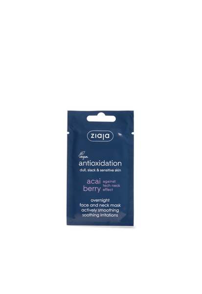Antioksidanttinen Ziaja Acai Berry silottava ja rauhoittava kasvonaamio veltostuneelle, elottomalle ja herkälle iholle. Hemmotteleva voidemainen naamio taistelee ikääntymisen ensimerkkejä, älylaitteiden käytön aiheuttamia kaulajuonteita sekä ilmansaasteita vastaan. Silottaa ihoa ja rauhoittaa ihoärsytyksiä tehokkaasti. Brasilialainen superfood Acai-marja sisältää runsaasti antioksidantteja, jotka suojavat ihoa ennenaikaista ikääntymistä aiheuttavilta vapailta radikaaleilta. Hyaluronihappo kosteuttaa ja silottaa juonteita. Beetaglukaani vähentää ihoärsytyksiä ja rauhoittaa punoitusta. Ihosta tulee välittömästi kauniin heleä ja terveen näköinen. Täydellinen naamio yökäyttöön. Raikas marjaisia tuoksu antaa virkistävän tunteen. Sisältää 85 % luonnollisia ainesosia. Vegaaninen. Testattu ihotautilääkärin valvonnassa.