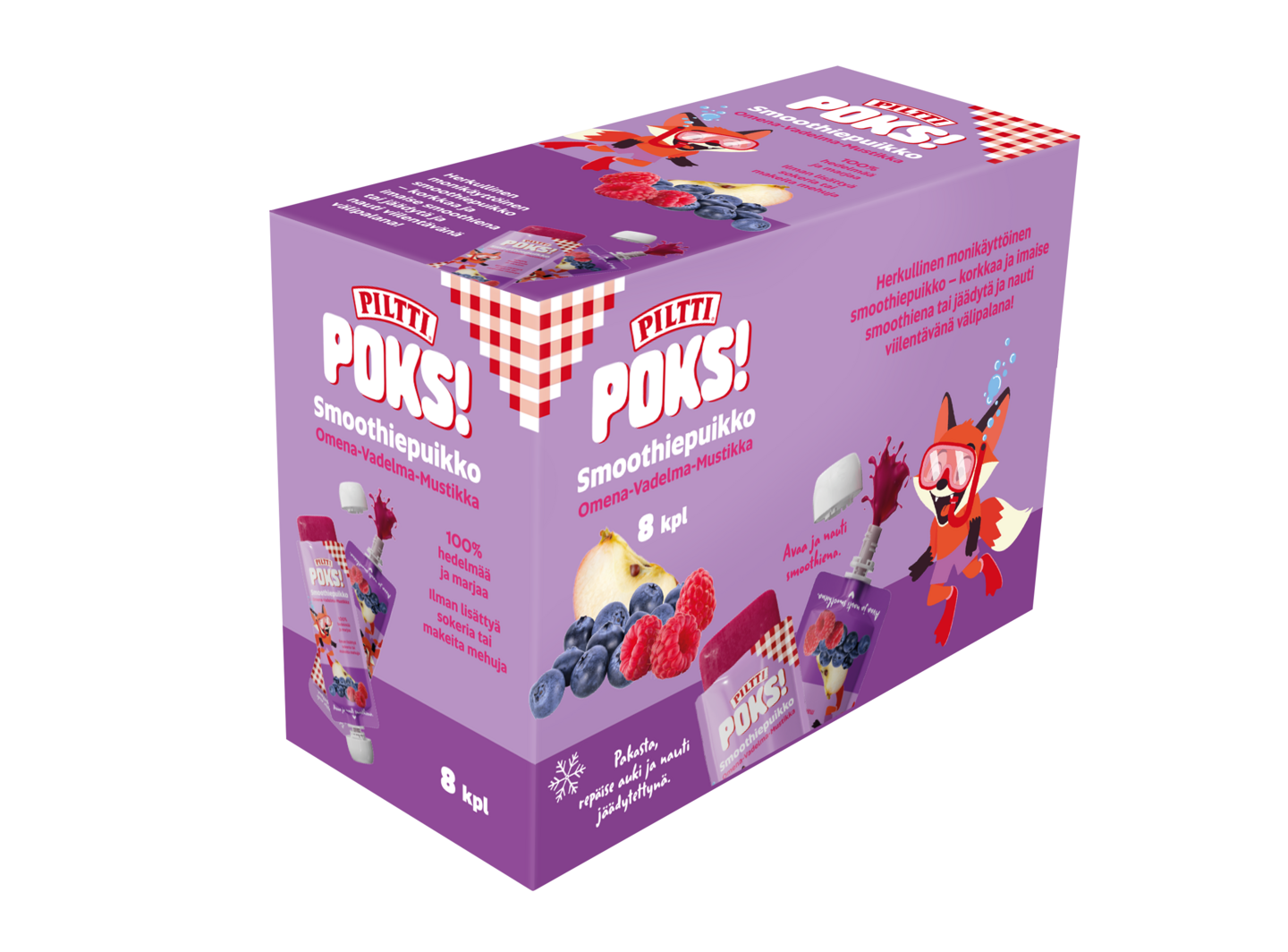 PILTTI POKS! 8x70g Smoothiepuikko Omena-vadelma-mustikka