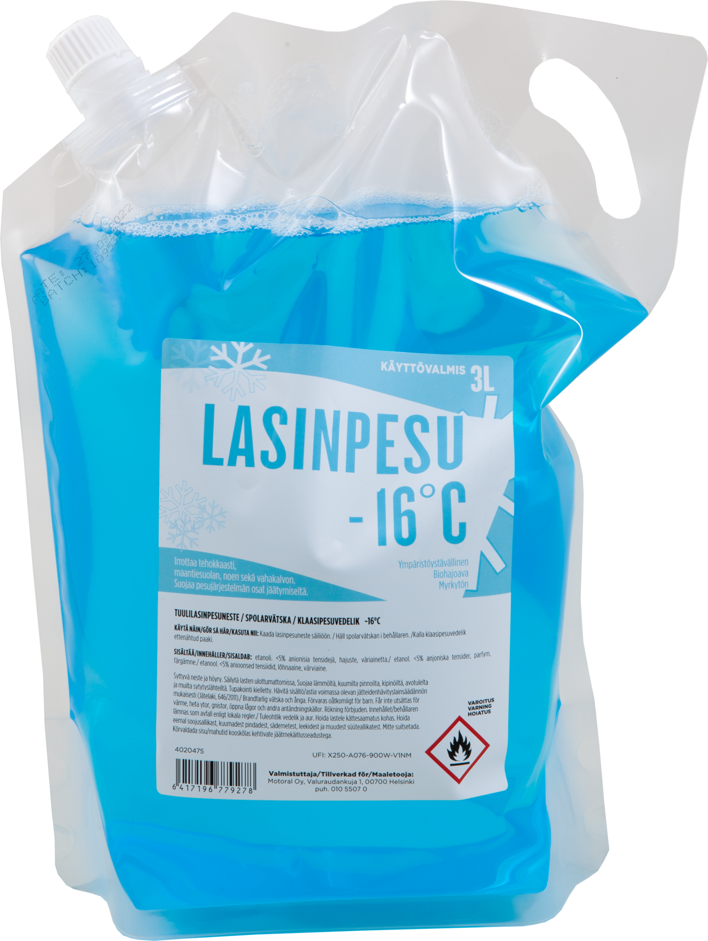 Käyttövalmis lasinpesuneste -16C 3l pss