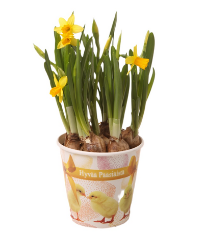Pääsiäisnarsissi pahviruukunsuojalla FI